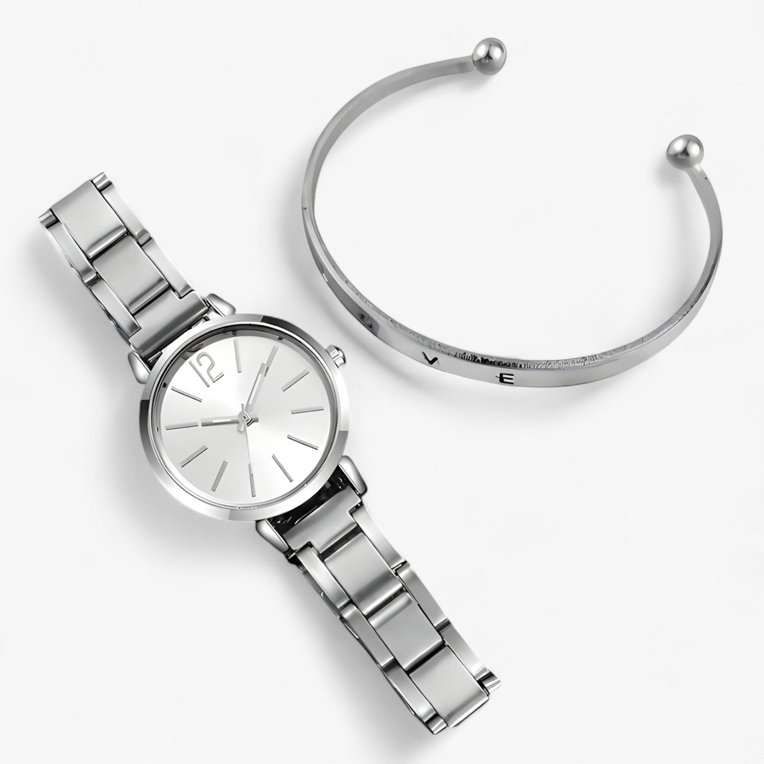 Lorena | Elegante Damenuhr-Set – Stiletto Edelstahl & Armband