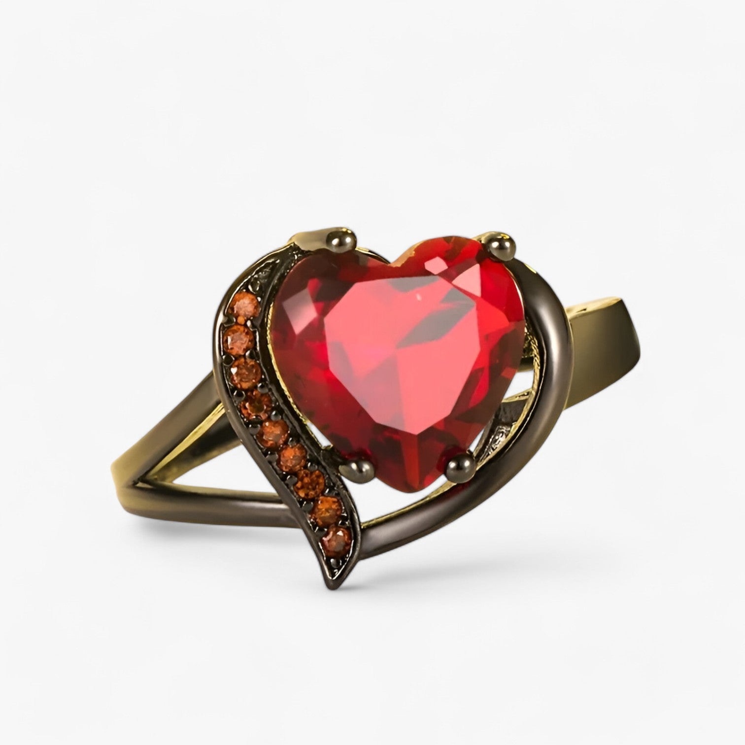 Der rote Herz-Zirkon symbolisiert Leidenschaft und Liebe, sein Funkeln macht die Ringe zu einem perfekten Akzent für jede Gelegenheit.