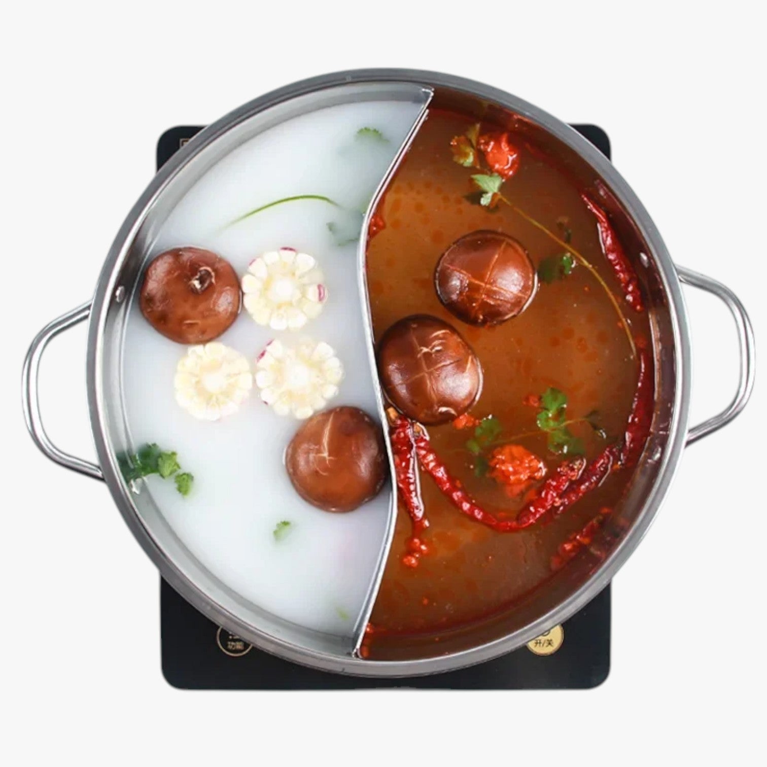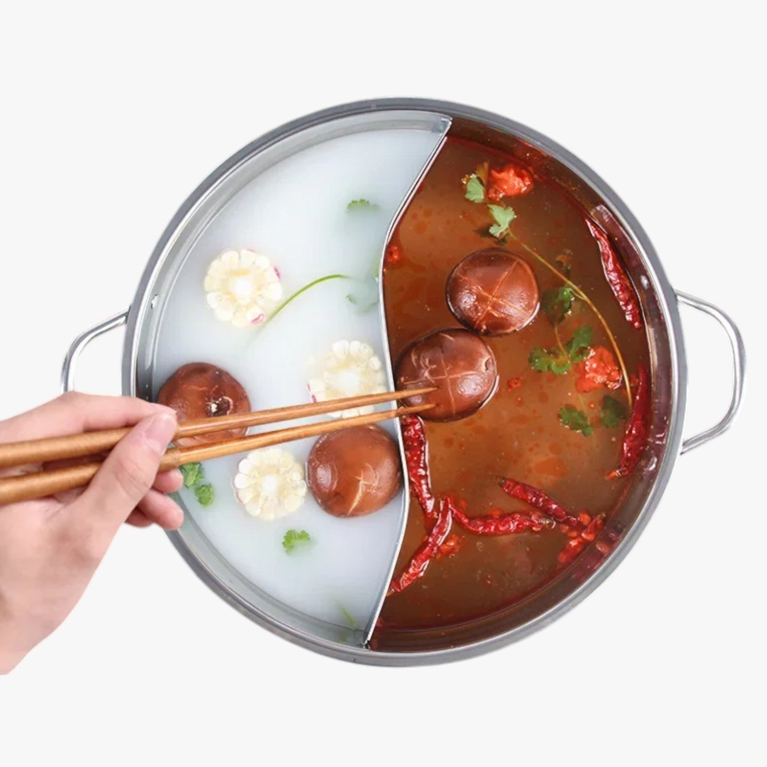 Bereite gleichzeitig eine würzige und eine milde Brühe zu – ganz ohne zwei Töpfe und ohne viel Abwasch. Mit Mallory wird das Kochen einfach und macht Spaß.