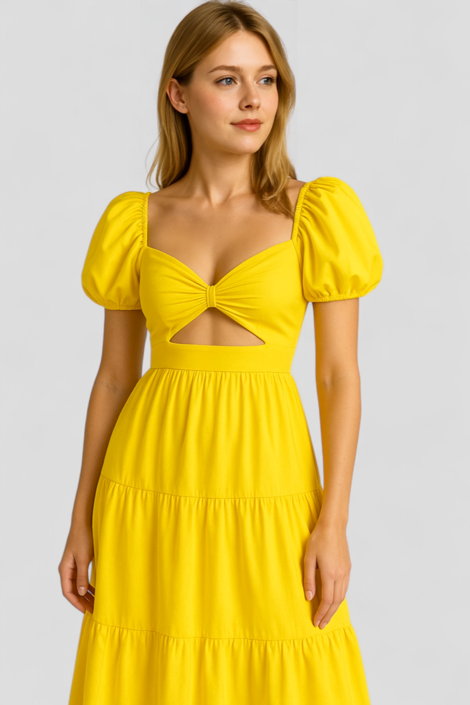 Entdecken Sie dieses elegante und vielseitige Kleid, das perfekt für warme Sommertage geeignet ist. Mit vorgeformten Cups und einem stilvollen Knoten-Design bietet dieses Kleid einen modischen und raffinierten Look für verschiedene Gelegenheiten.