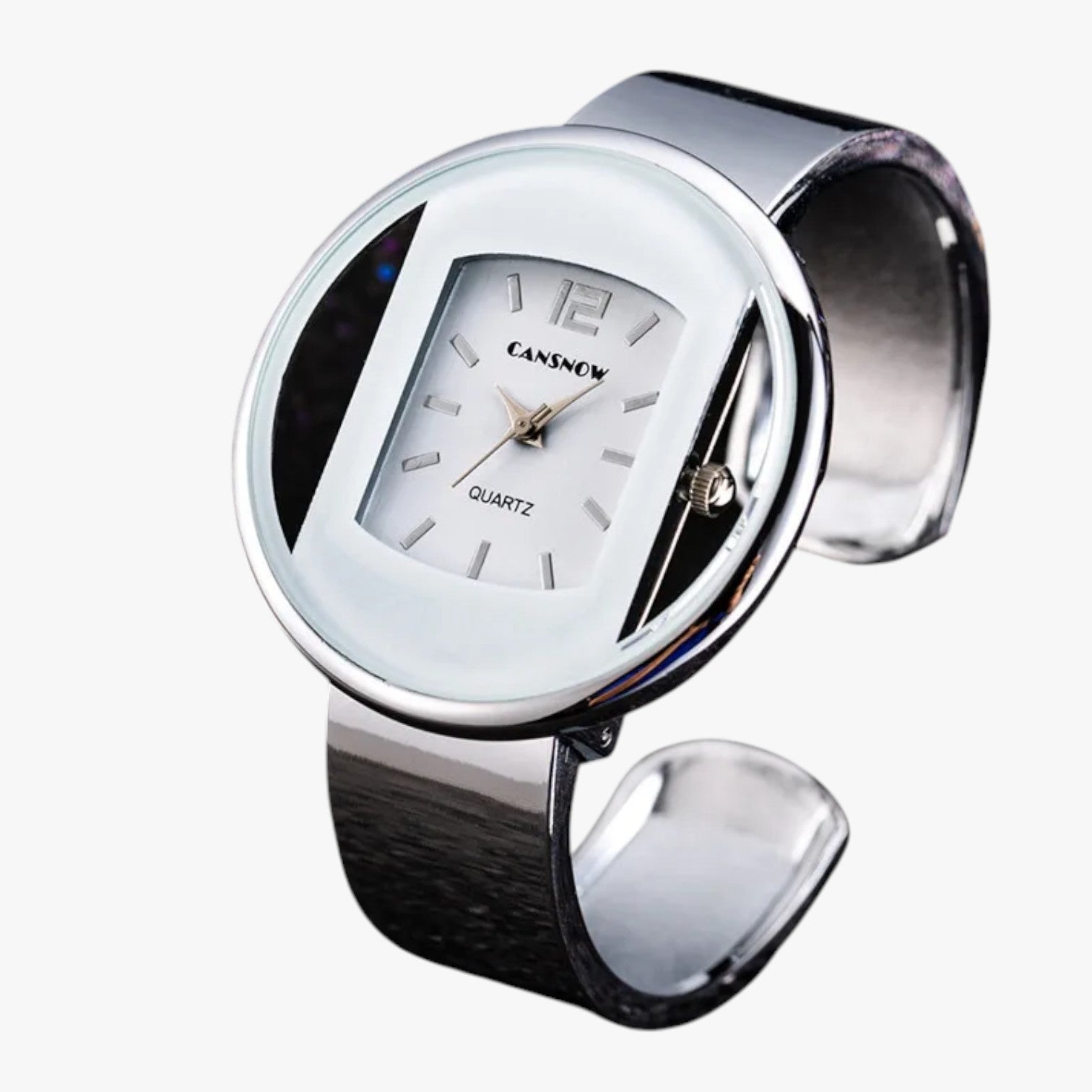 Der polierte Edelstahl ist raffiniert, aber leicht: Du trägst ihn, ohne ihn zu spüren.