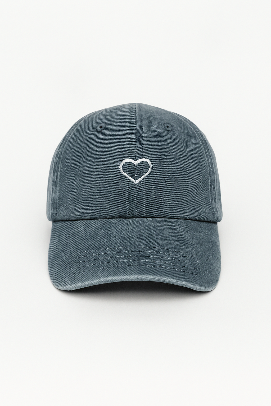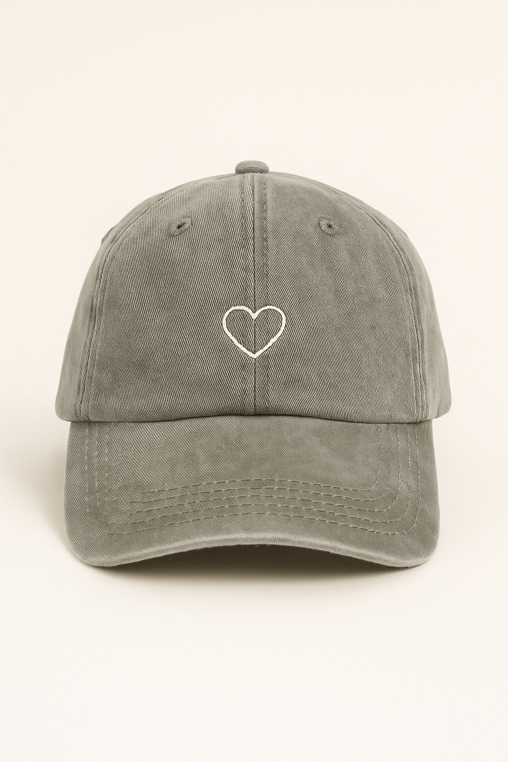 Minimalistische Herz-Kappe | Verwaschene graue Baseballmütze aus Baumwolle