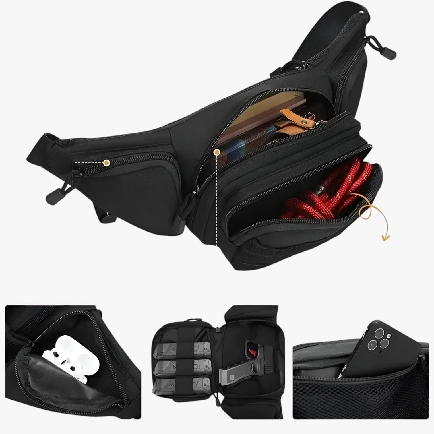 Jede Tasche ist für den schnellen und sicheren Zugriff auf Ihre Gegenstände konzipiert.
