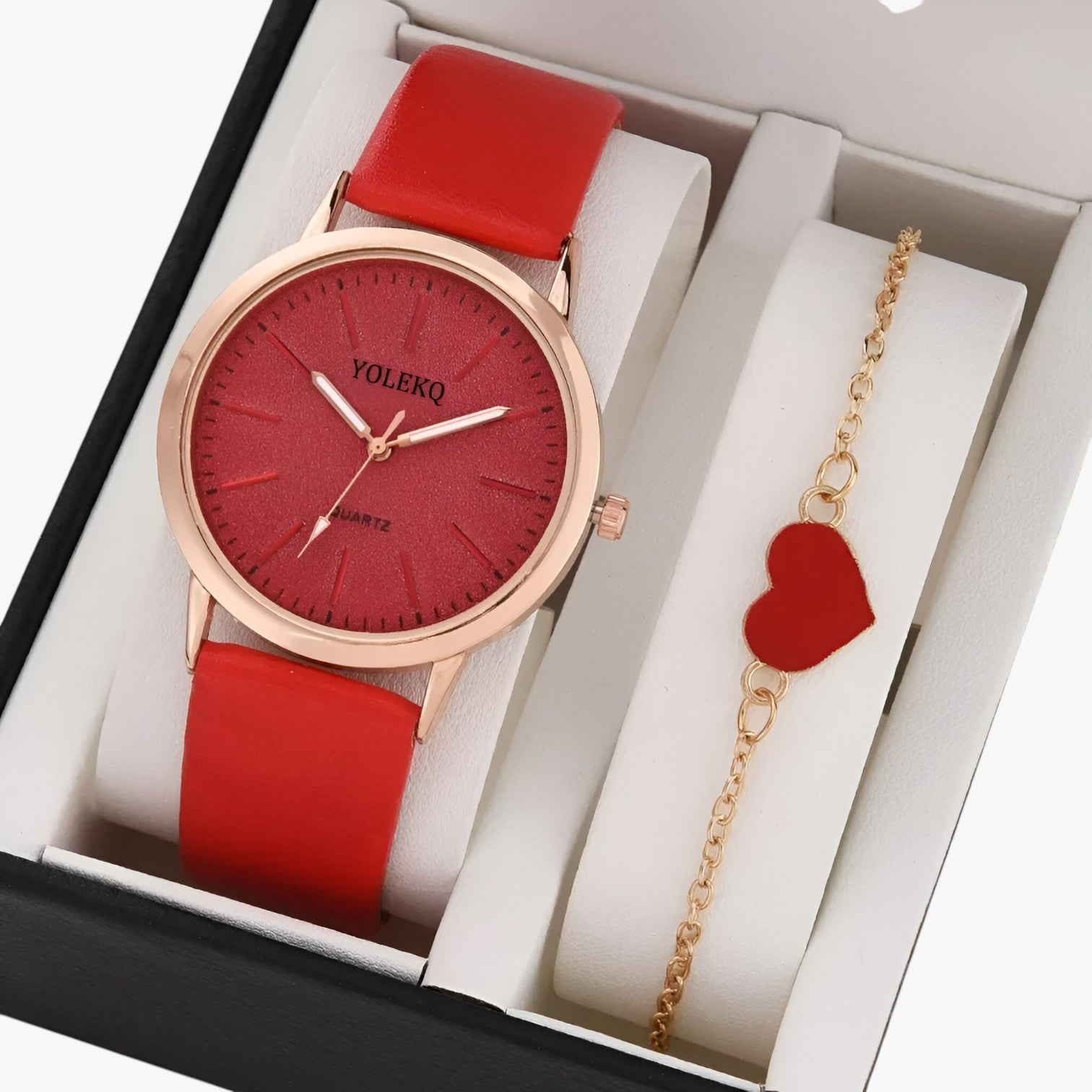 Nova | Set Eleganza Femminile 2 Uhren aus Leder für Damen und Armband, Luxusstil am Handgelenk