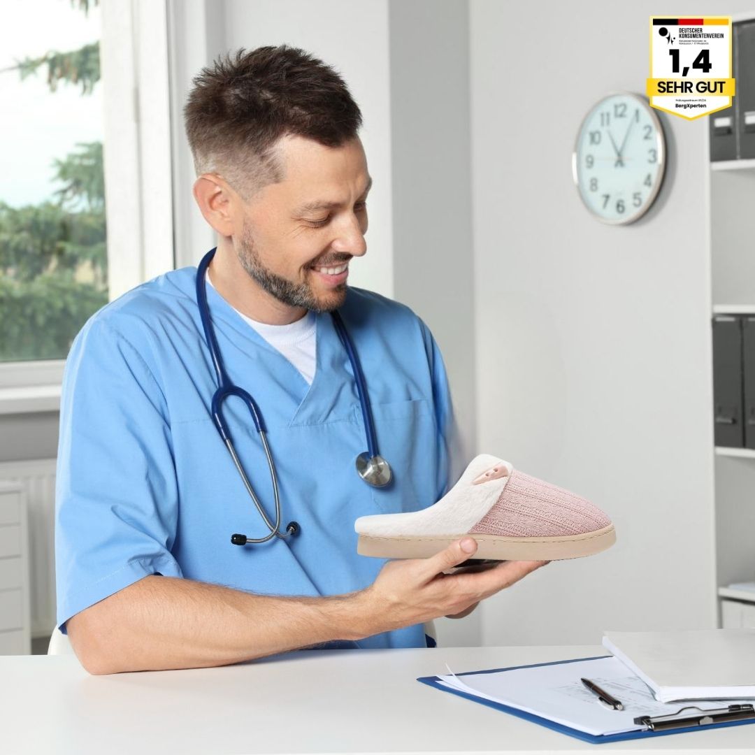 Erleben Sie eine Kombination aus Sicherheit und Nutzen. Mit einem rutschfesten Design sorgen diese Hausschuhe für selbstbewusste Schritte auf allen Innenflächen. Die zusätzliche orthopädische Eigenschaft bedeutet, dass Sie unterstützend bei Fußschmerzen und Fußkrankheiten sind.