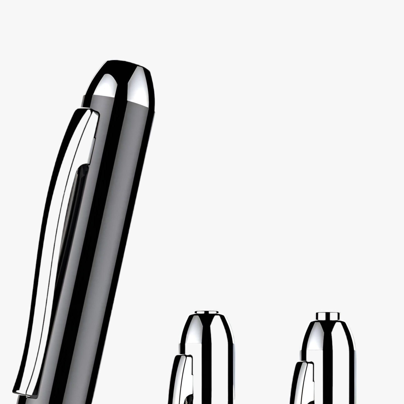 Mit seinem schlanken und professionellen Aussehen fügt sich dieser Stift perfekt in jede Umgebung ein. Ideal für Interviews, Vorlesungen oder persönliche Notizen und immer diskret und stilvoll in der Handhabung.