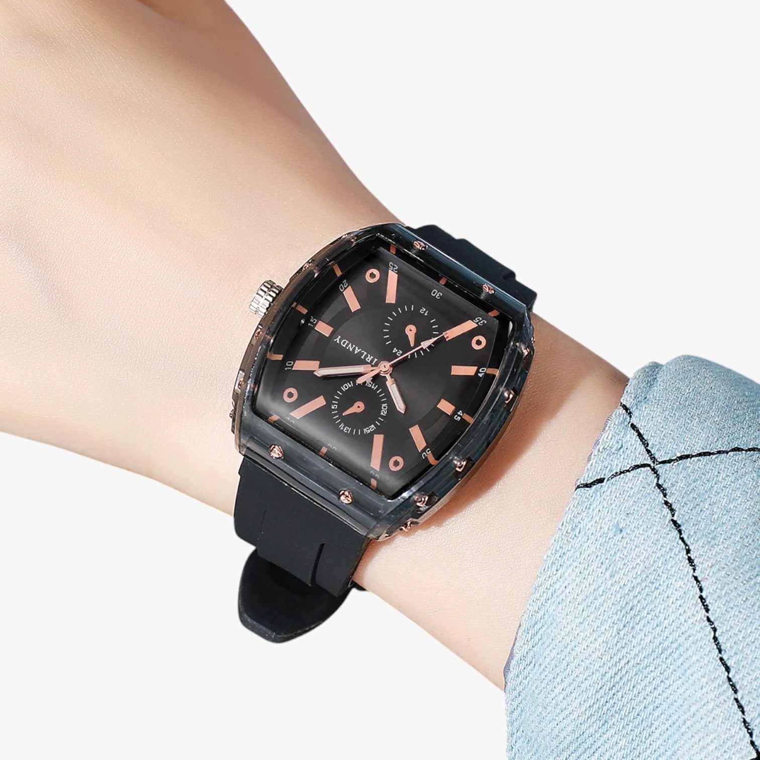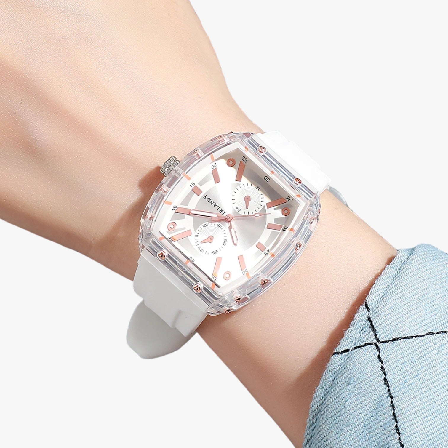Das Silikonarmband schmiegt sich wie eine zweite Haut ans Handgelenk. Keine Abdrücke, kein Unbehagen: nur ganztägiger Komfort.