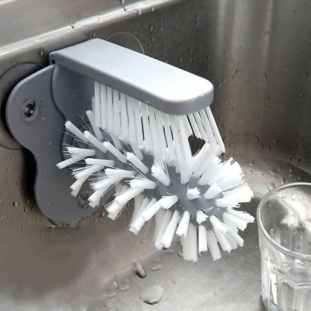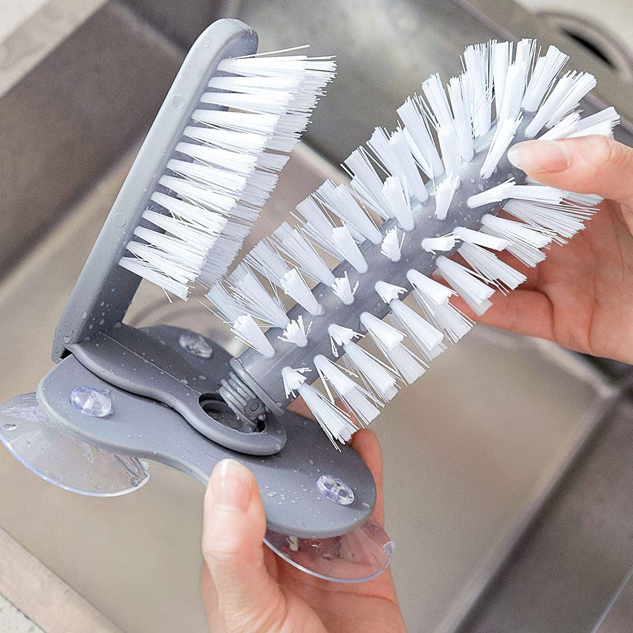 Ausgestattet mit doppelseitigen Borsten und einem Saugnapf, der fest am Boden Ihrer Spüle oder Arbeitsplatte haftet. Diese einzigartige Bürste ist ein absoluter Helfer beim Geschirrspülen!