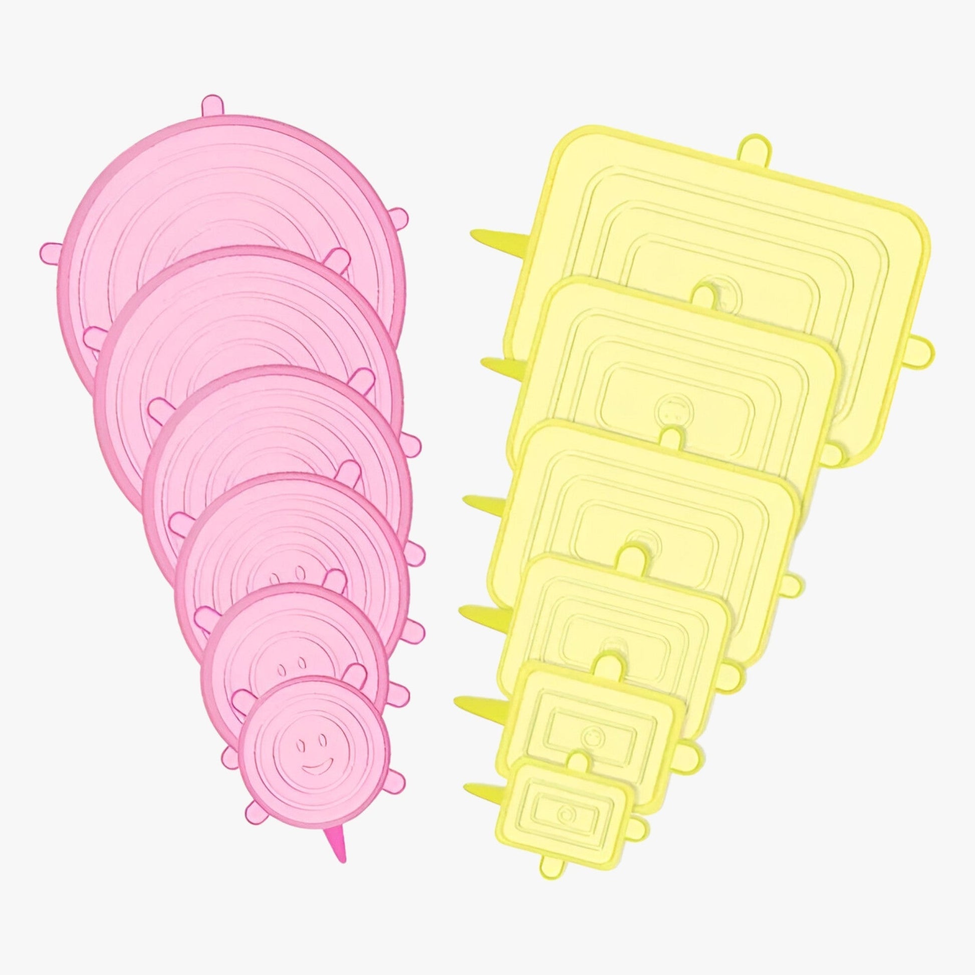 Schützen und lagern Sie Ihre Lebensmittel ganz einfach mit unserem 12-teiligen Set von Silikondeckeln, und genießen Sie die Gewissheit, dass Ihre Reste und Zutaten so frisch wie möglich bleiben!