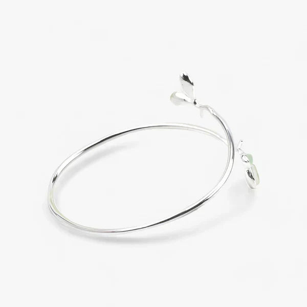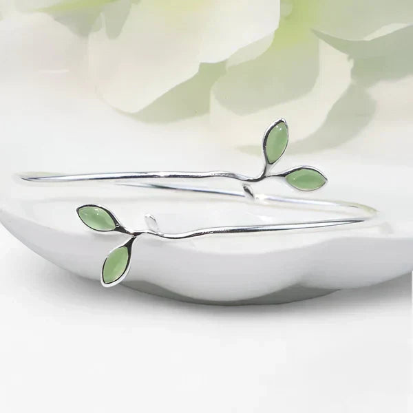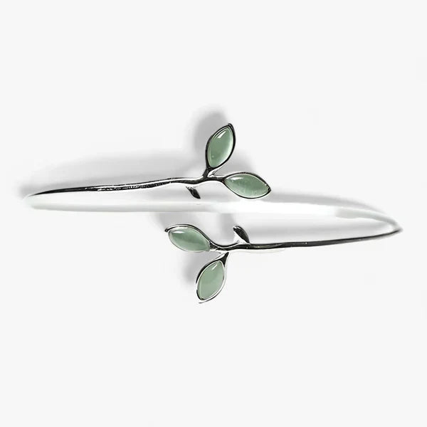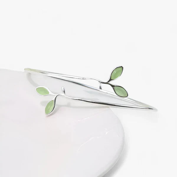 Silberarmband Bangle mit Grünem Blatt - Naturinspirierte Eleganz