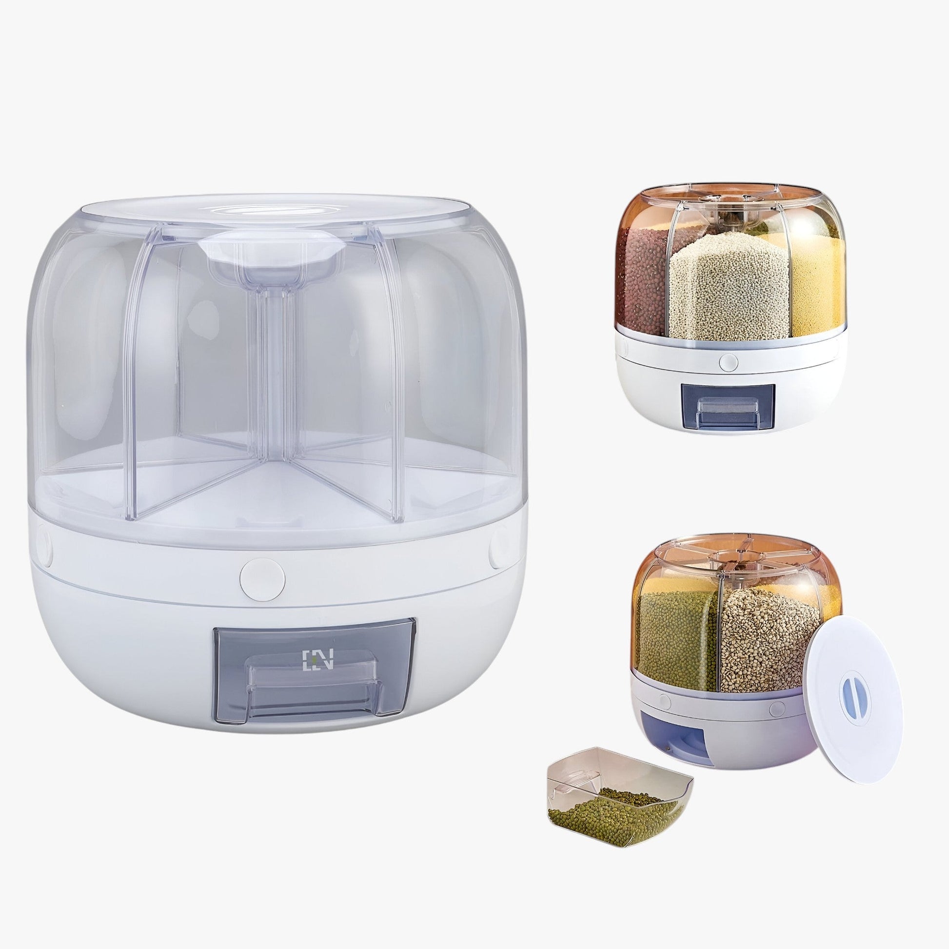 Der intelligente Verschluss schützt Ihr Getreide vor Insekten und Feuchtigkeit. Mit sechs Fächern bleibt jede Zutat frisch und perfekt konserviert.