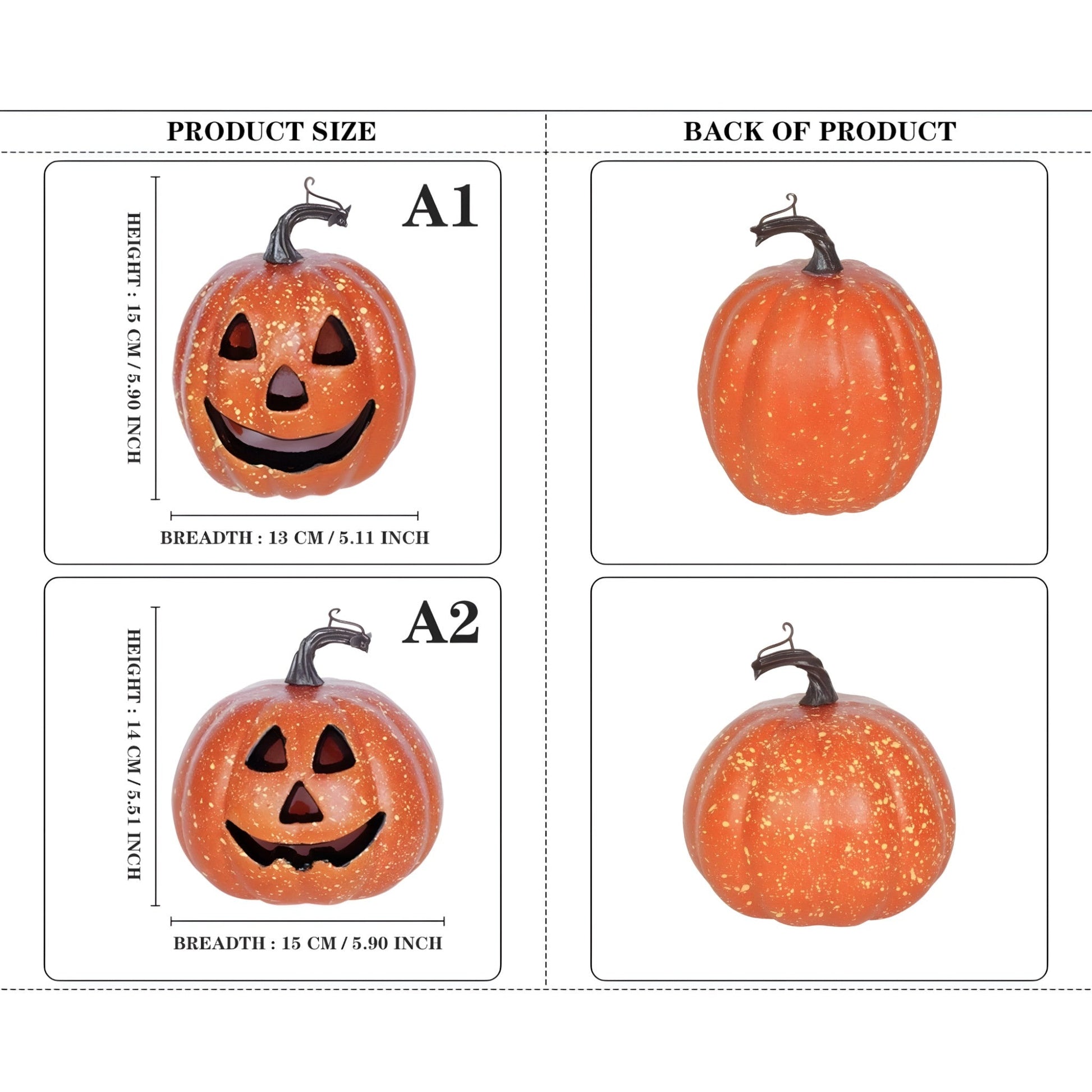 Diese Kürbisse sind vielseitig genug, um jedes Halloween-Thema zu verbessern, von traditionellen herbstlichen Ästhetiken bis hin zu modernen und gruseligen Stilen. Verwenden Sie sie als Tischmittelpunkt, Kamindekoration oder sogar in Ihrem Garten, um die Kinder beim Süßigkeiten sammeln mit einer einladenden, aber schaurigen Atmosphäre zu begrüßen.