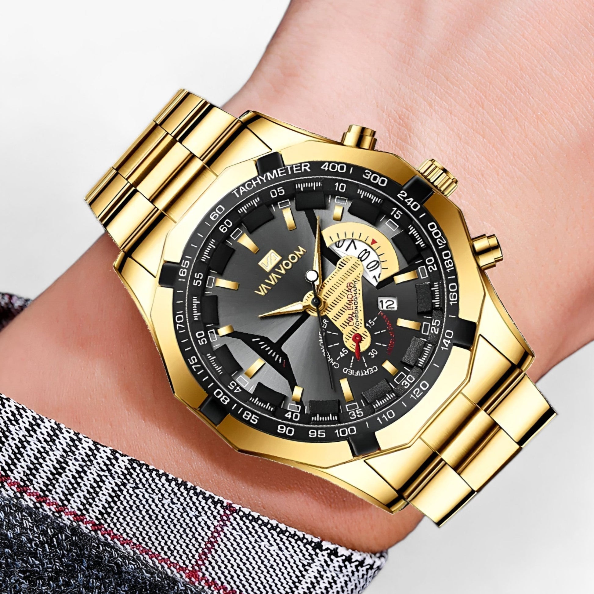 Präsentiert die BRONZ Herren Gold Sportuhr Quarz wasserdichte Armbanduhr, perfekt für einen aktiven Lebensstil und Reisen. Diese Uhr verfügt über ein elegantes goldfarbenes Gehäuse und Armband mit einer zuverlässigen Quarzuhrbewegung. Sie kombiniert Stil mit Funktionalität, ideal für den täglichen Gebrauch und Outdoor-Aktivitäten.