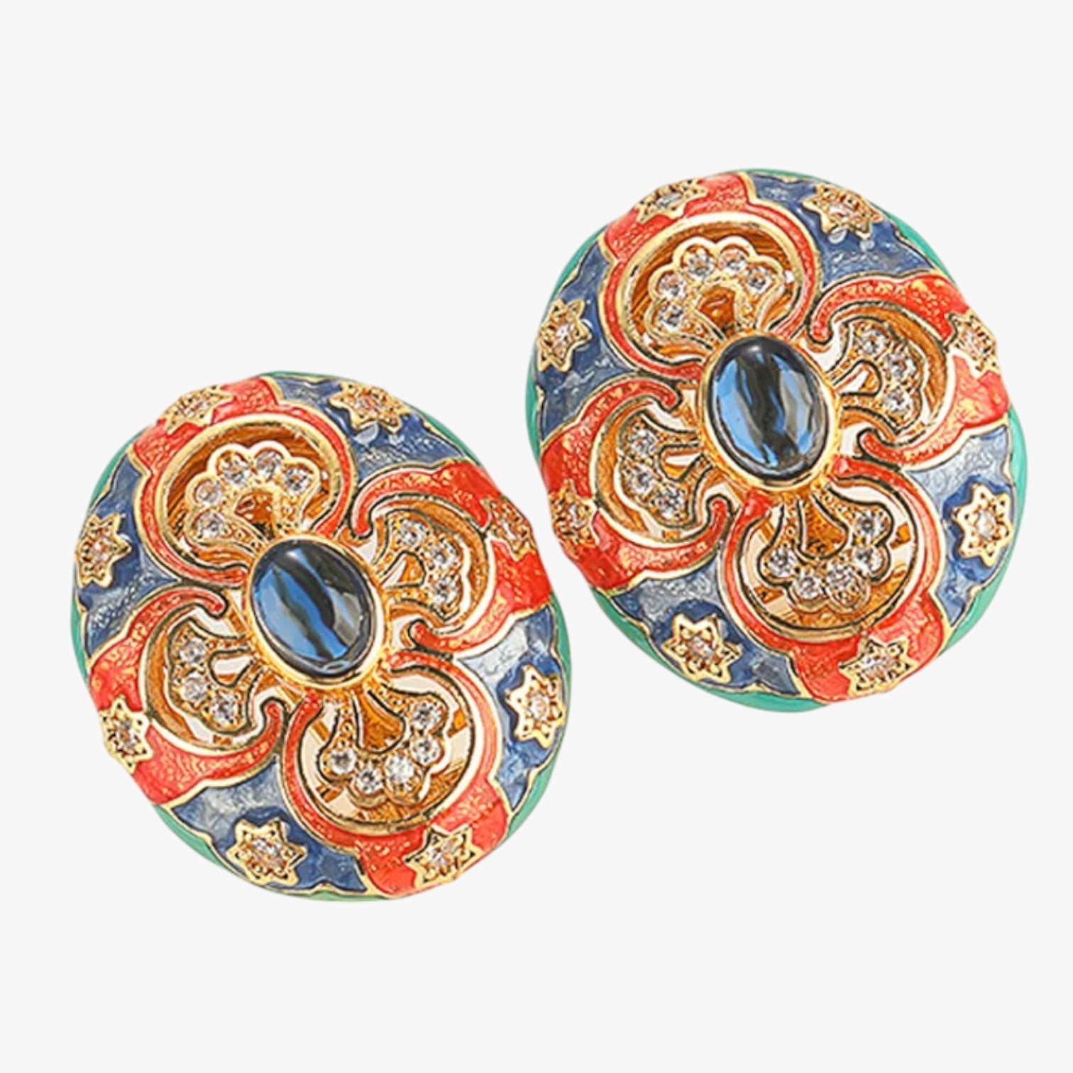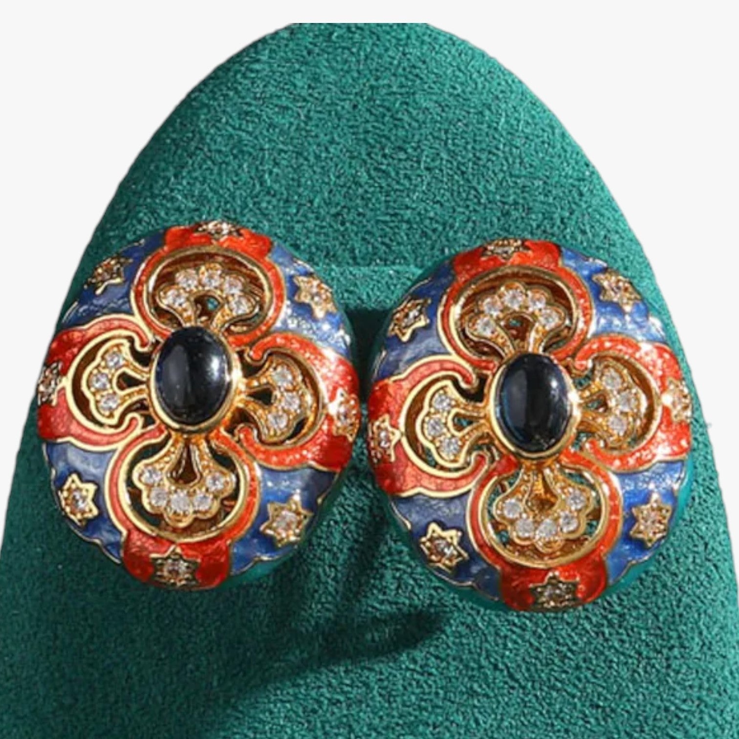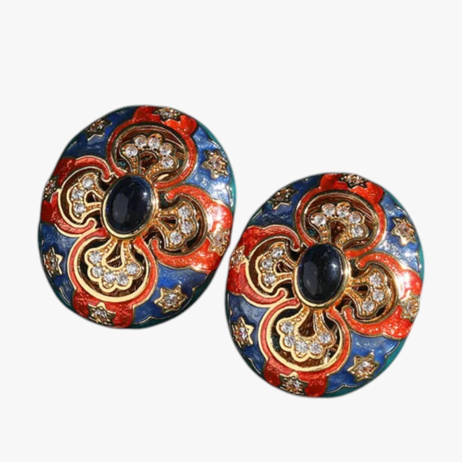 Stephanie | Vintage goldene Ohrringe mit verzierten Emaille-Details