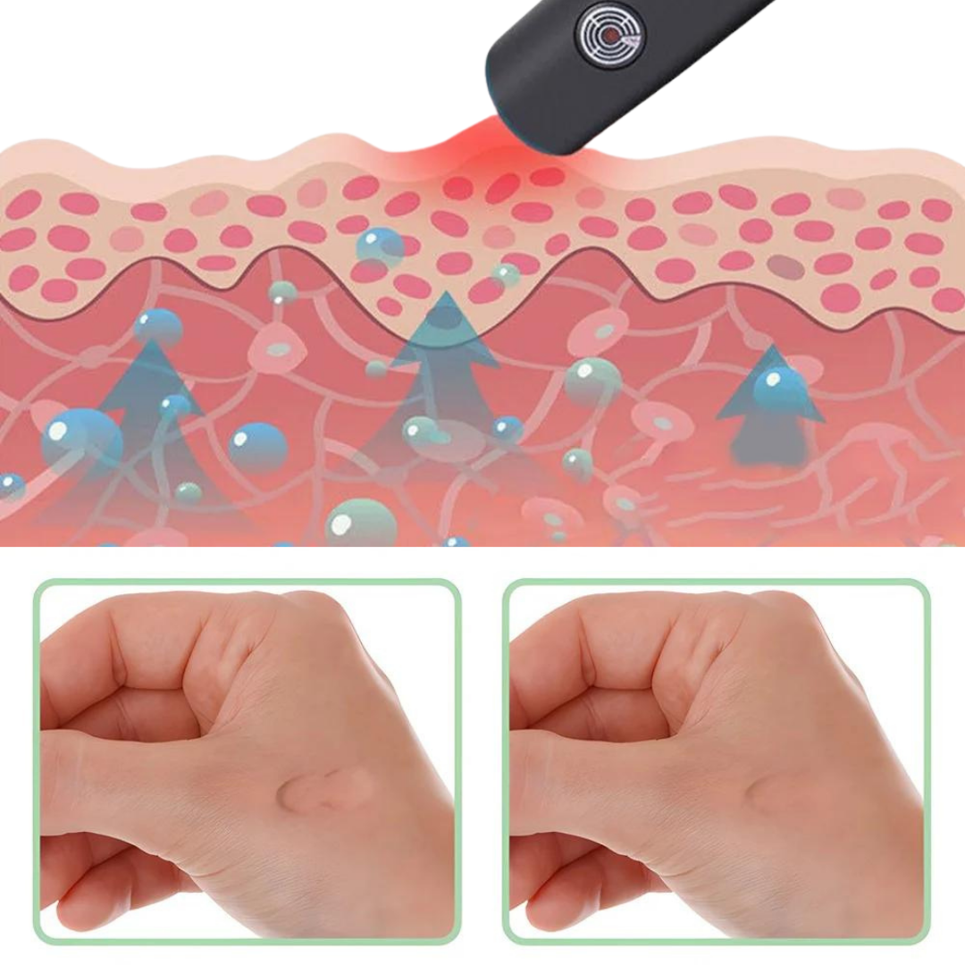 Der mit einer keramischen Heizplatte ausgestattete Insektenstichheiler wird einfach auf die betroffene Stelle gehalten. Diese Anwendung beschleunigt die Heilung und lindert den Juckreiz.