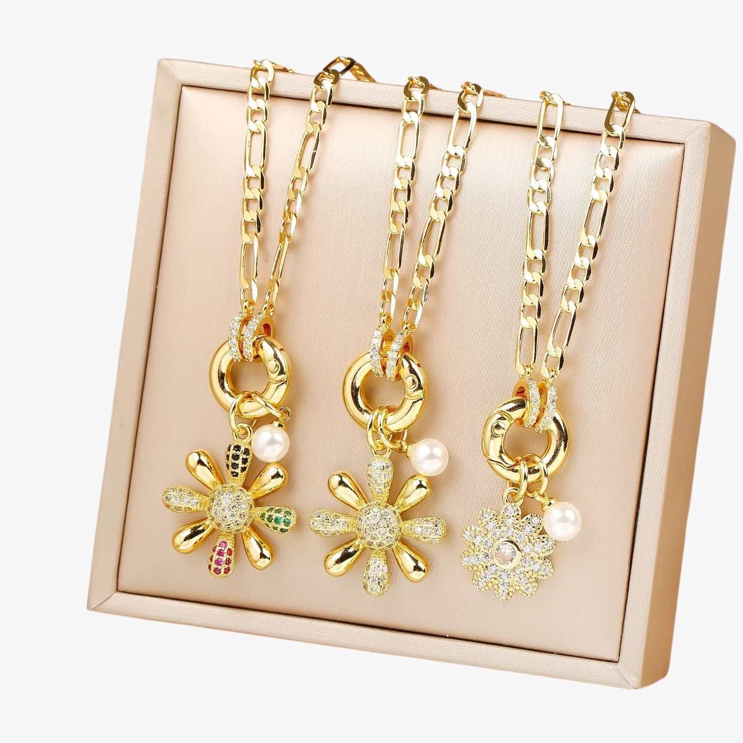Sunny | Halskette mit Saphirblüte und glamourösen Zirkonia