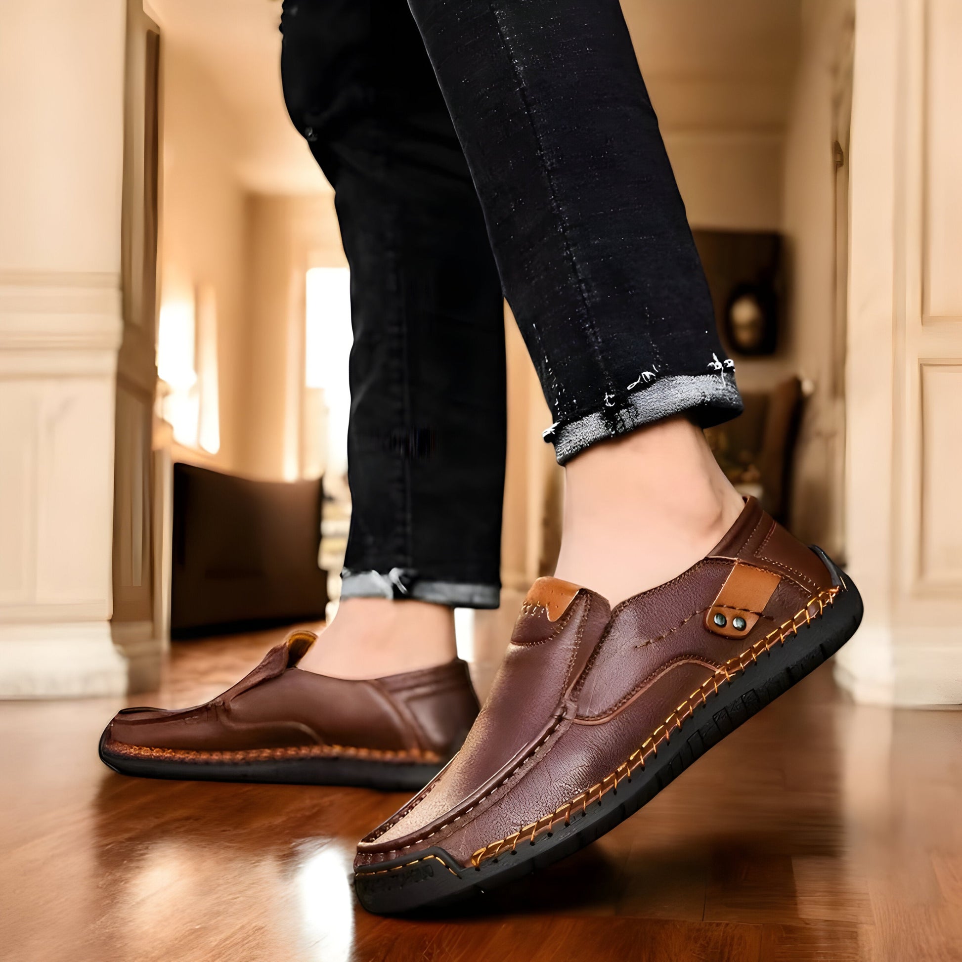 Entworfen für Eleganz und den täglichen Gebrauch, bieten die Theo Handmade Ledermokassins überlegenen Komfort, hohe Langlebigkeit und einen zeitlosen Stil. Gefertigt aus hochwertigen Materialien und mit handwerklicher Präzision sind diese Mokassins perfekt für jeden Anlass.