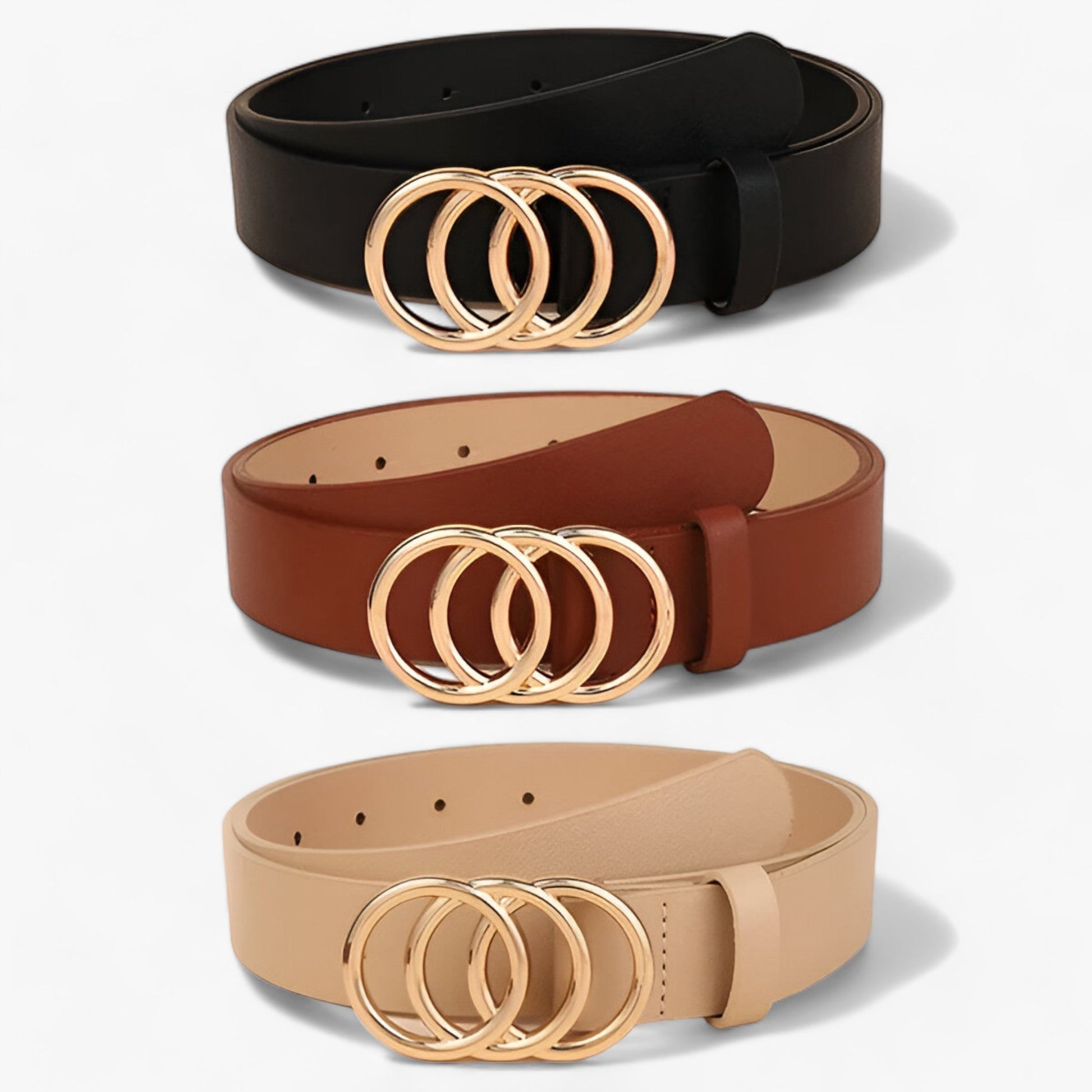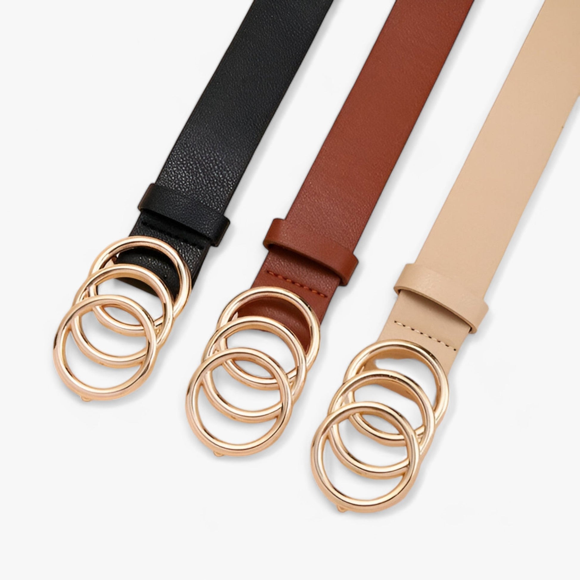 Einzigartiges Design: Die Dreiring-Legierungsschnalle sorgt für ein stilvolles und auffälliges Detail.