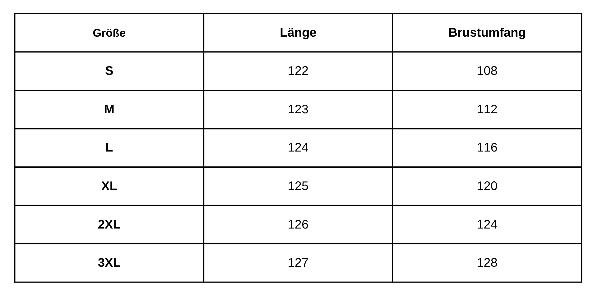 - 3XL: 46 - Brust: 128 cm, Länge: 127 cm