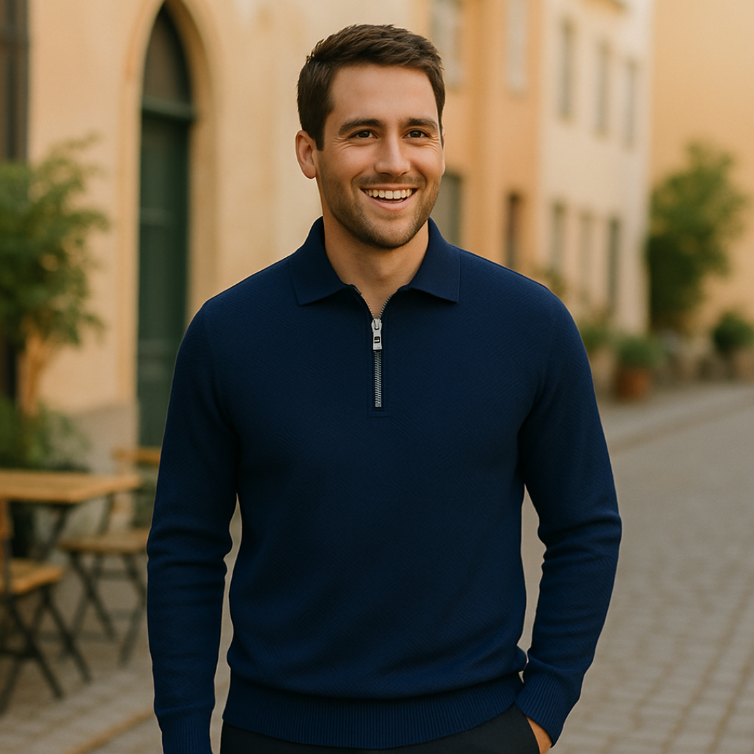 Victor | Texturiertes Herrenpullover mit Viertelreißverschluss - Moderne Passform