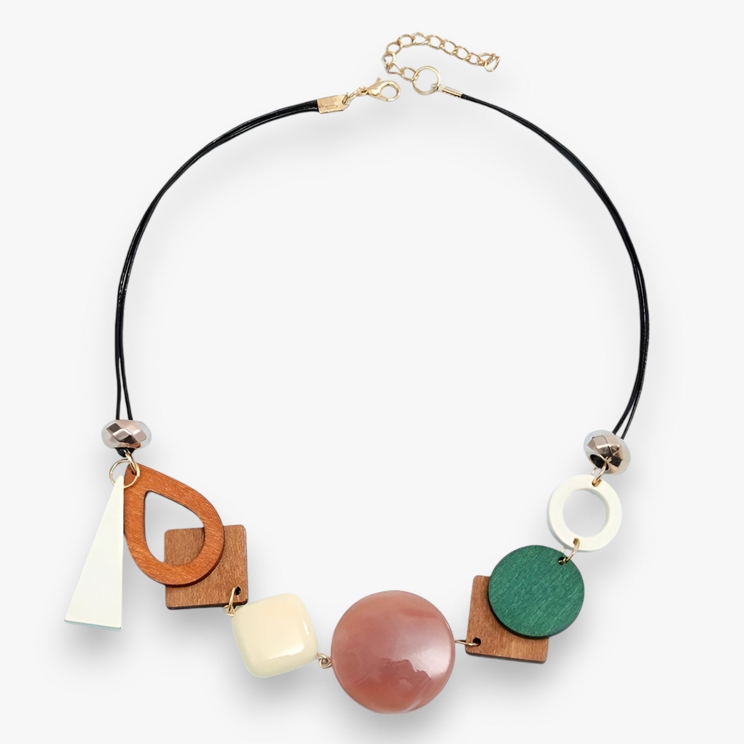 Das markante Design und die natürlichen Holztöne dieser Halskette ergänzen jeden Look, von minimalistisch bis boho.