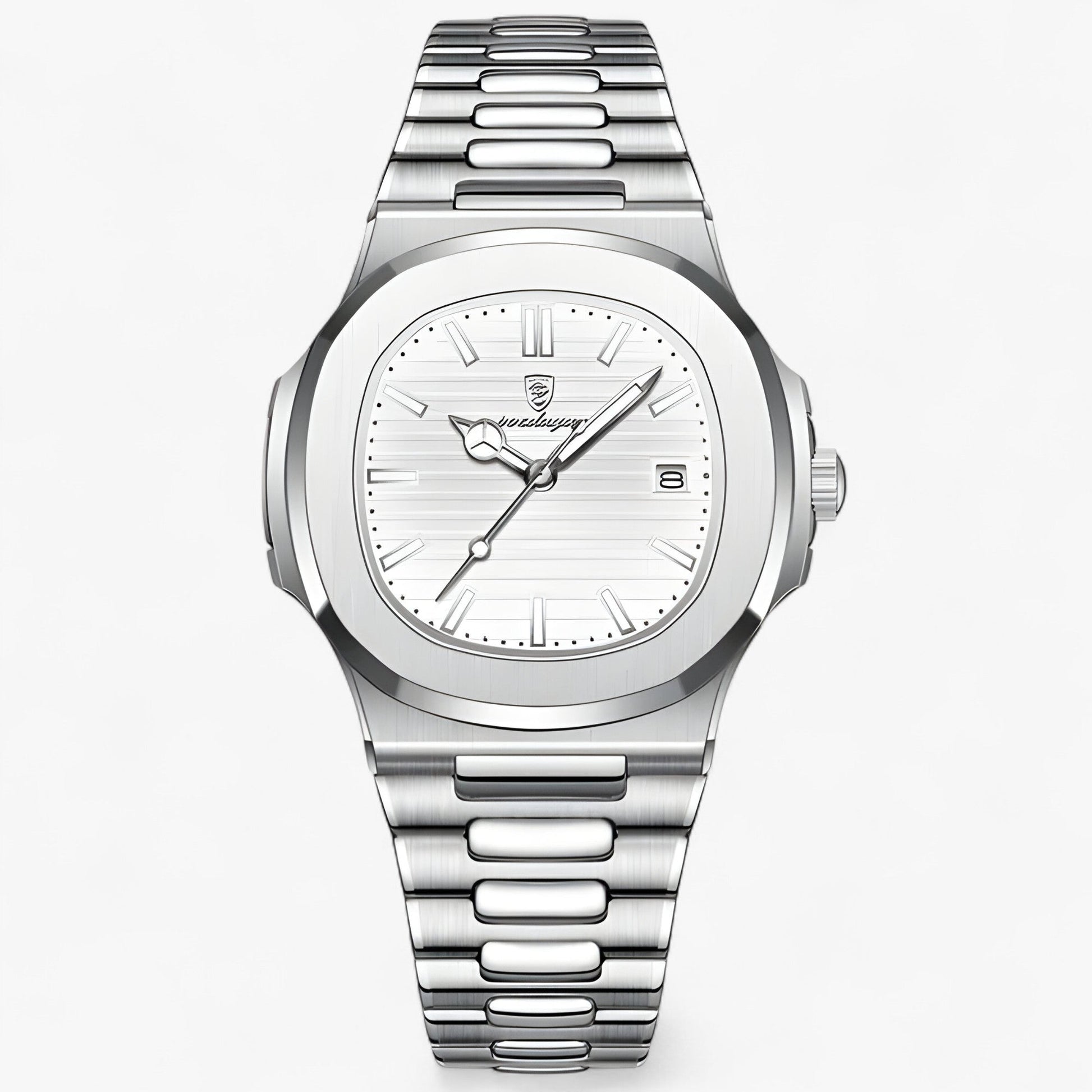 Eine nahtlose Verbindung klassischer Eleganz und modernem Charme – Warren™ besticht durch ein stilvolles Edelstahlgehäuse und ein zeitloses Zifferblatt. Diese Uhr ist die perfekte Wahl für jeden Mann, der Wert auf Ästhetik und Funktionalität legt.