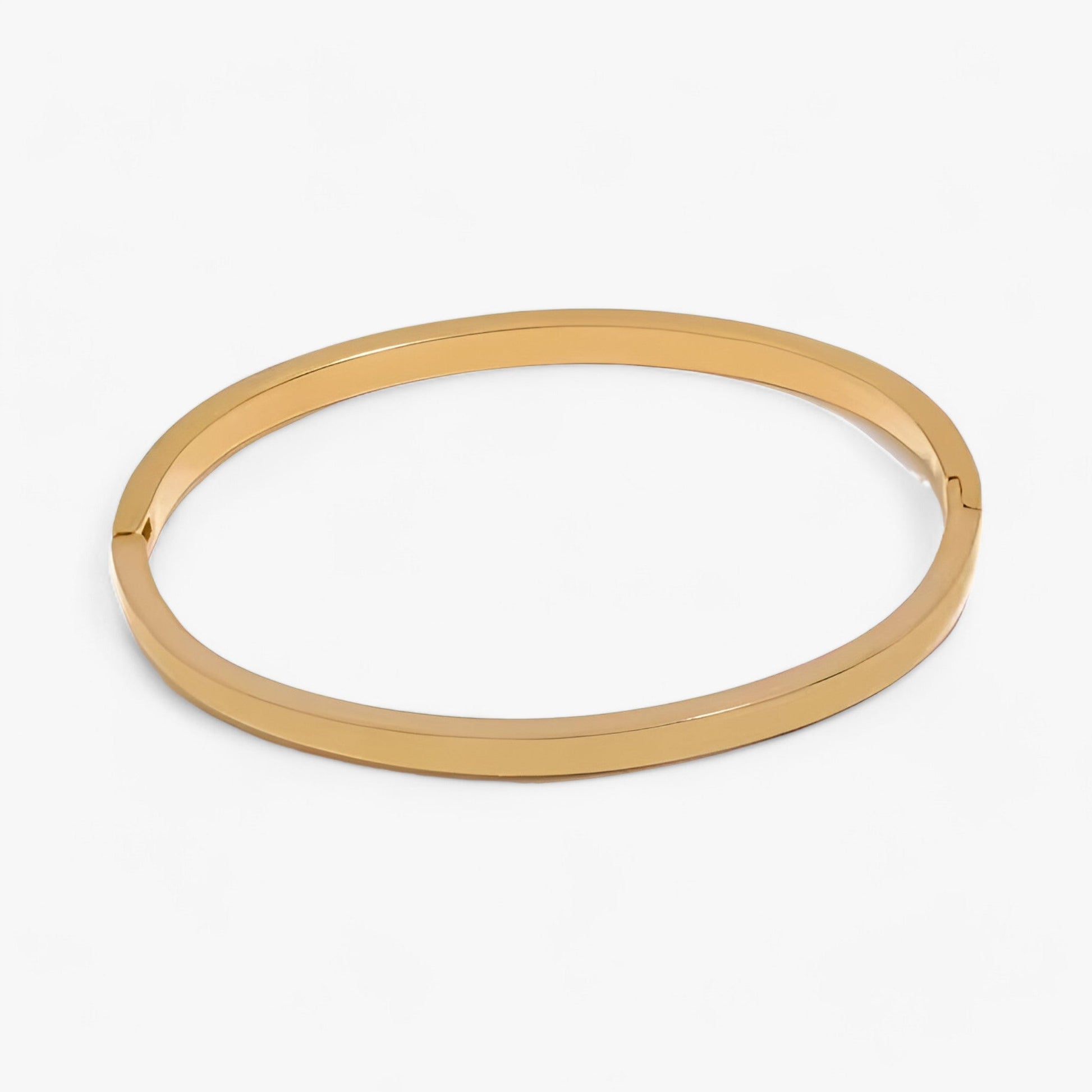 Entdecken Sie das Wasserdichte Glatte Runde Armband aus Edelstahl, ein schlankes und minimalistisches Armband, das für Frauen entworfen wurde. Dieses elegante Armband verfügt über eine glatte Textur und ist mit einer luxuriösen 18k-Goldfarbe beschichtet. Hergestellt aus hochwertigem Edelstahl, ist es sowohl langlebig als auch wasserdicht, was es zu einem perfekten Alltagsaccessoire macht, das Stil und Funktionalität vereint.