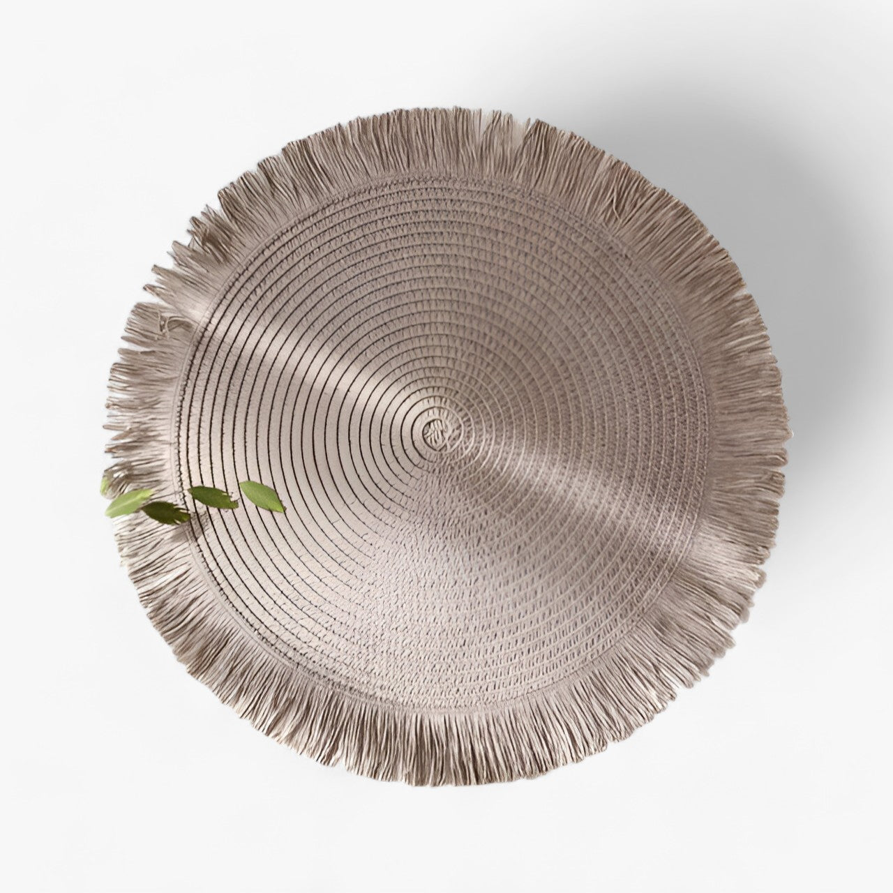 Artisanisch gewebte runde Tischsets sind exquisite Esszimmeraccessoires, die traditionelles Handwerk mit zeitgenössischem Design vereinen. Handgewebt aus natürlichen Fasern, zeigen die Tischsets einzigartige Muster und Texturen und verleihen jeder Tischdekoration einen eleganten Touch.