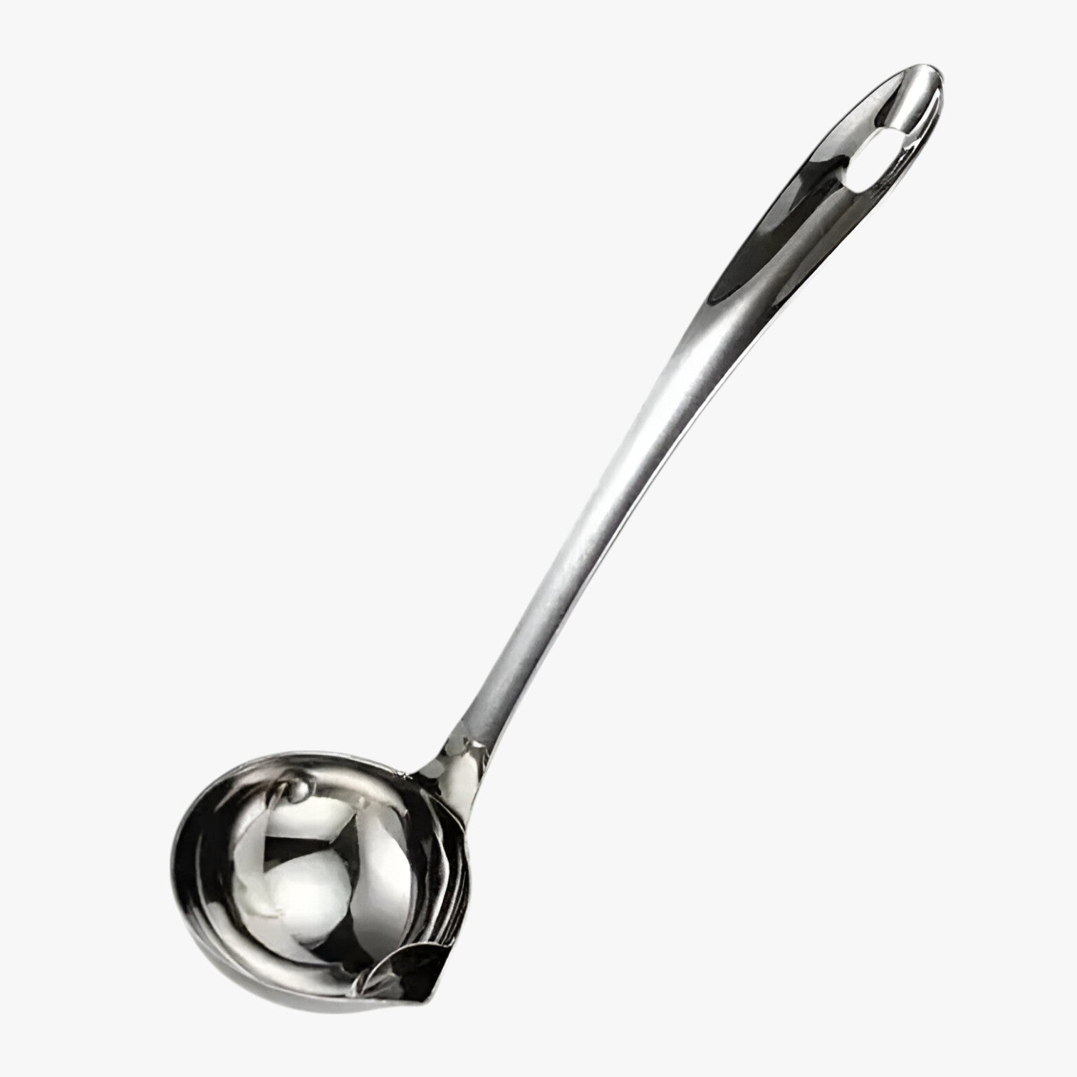 Dank der cleveren Aussparung trennt der Löffel das Öl beim Schöpfen automatisch ab. So bleibt Ihre Suppe oder Soße sauber.