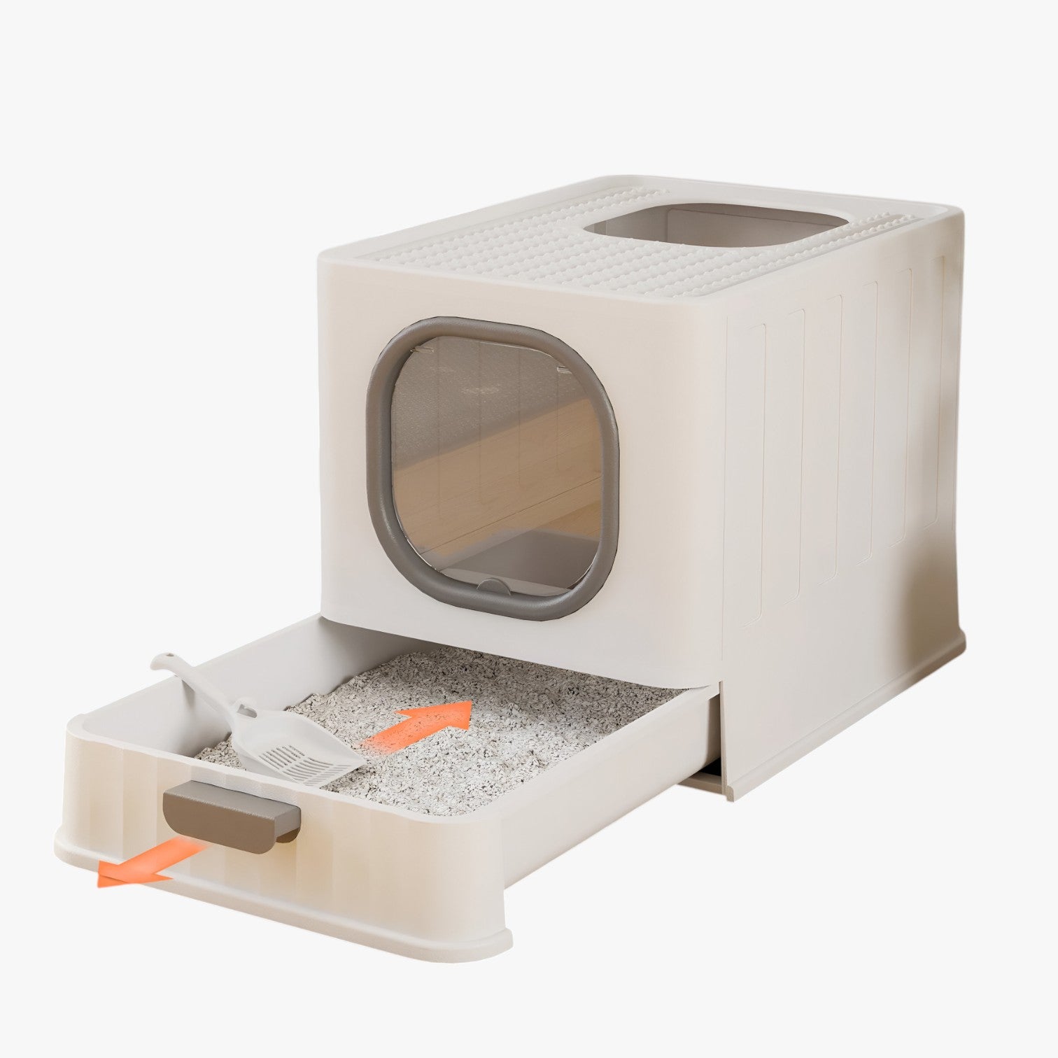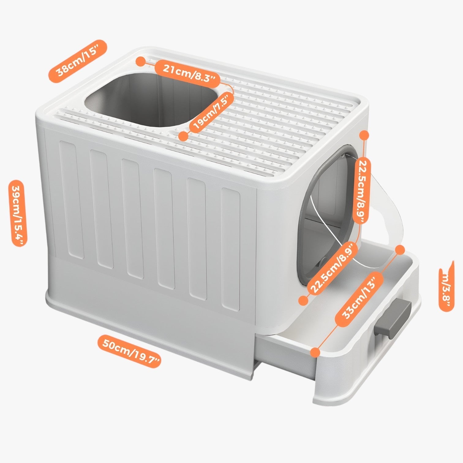 Platzmangel in herkömmlichen Katzenboxen gehört der Vergangenheit an. Diese Katzenbox bietet genügend Platz für große Katzen, damit sie sich frei drehen und scharren können.